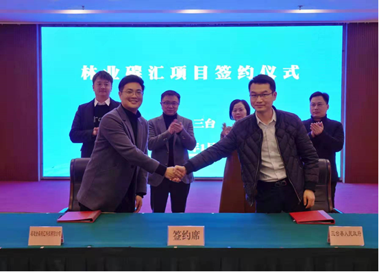 1月13日下午,福建金森林業股份有限公司旗下子公司福建金森碳匯科技有限公司與三臺縣人民政府舉行整縣林業碳匯合作簽約儀式。